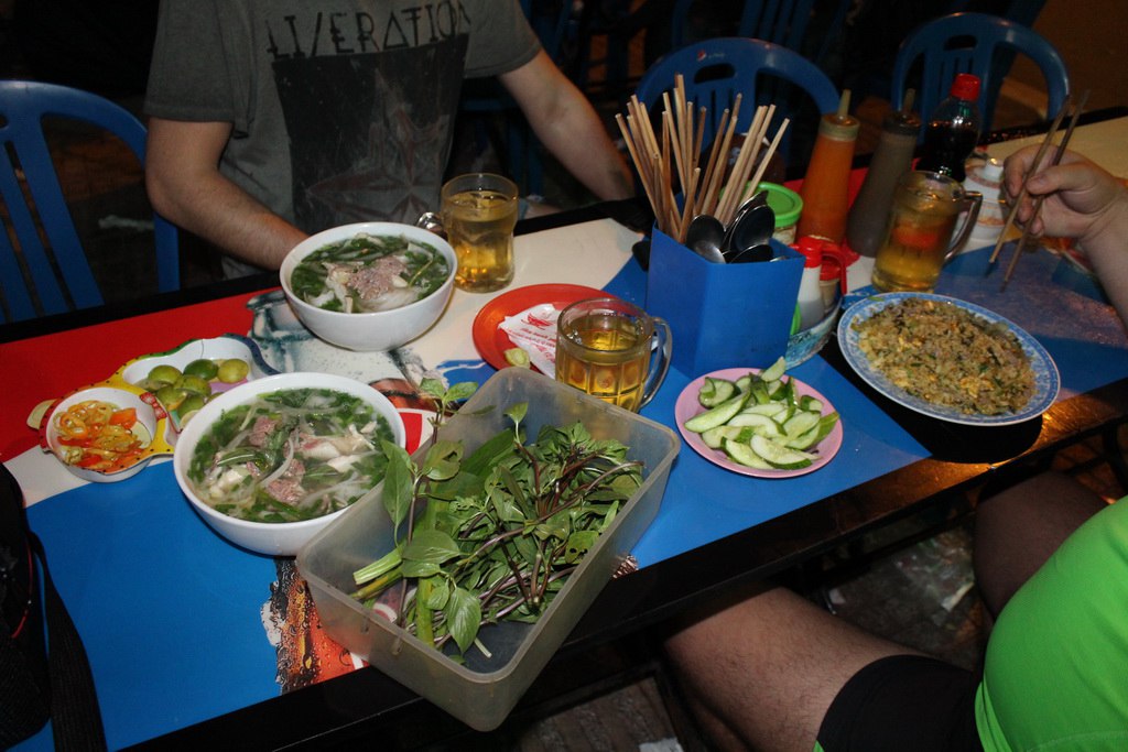 А еще, пусть и не без страха, но уже в Хошимине мы попробовали местной кухни. Еда вполне приличная даже в уличной кафешке, цена пира на троих 100 000 местных донгов — около 5$. Сколько у нас там стоит суп Фо Бо? Кстати, чтобы не говорили об антисанитарии и жаре, но мы ни разу не отравились за все три месяца жизни.