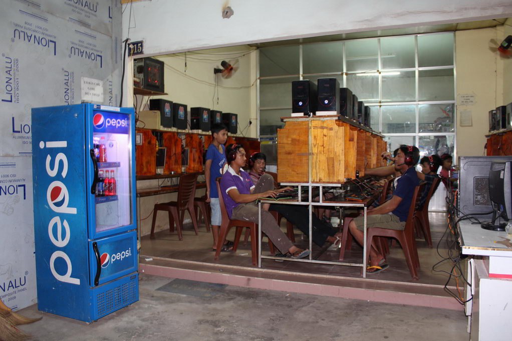 Если пойти на запад от ночного рынка Фукуока, то можно встретить несколько любопытных мест. Конечно тут полно, кафешек, локалок, магазинчиков и банков, но этого добра на острове хватает. А вот приглянулась мне следующая картина — прямо назад в мой 97. Вы помните игровые компьютерные клубы? Старкрафт и КС по сети, моя юность прошла от них в стороне в виду нехватки свободных денег, но их популярность у нас зашкаливала. На острове Фукуок, люди до сих пор не прочь поиграть.