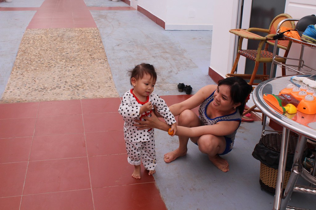 А это наша соседка по отелю. Вот какие ассоциации вызывает ребенок в соседнем номере? Правильно, крики, шум и вопли всю ночь. Если бы мы случайно не увидели её днем, то так бы и не знали, что рядом живет ребенок. К слову, во время полета в самолете во Вьетнам, за нами сидели двое вьетнамцев с ребенком и младенцем. Шуму от них было меньше, чем от взрослых наших соотечественников. Так что, моё мнение — Вьетнамцы придерживаются философии Шанти — живи и не мешай жить другим.