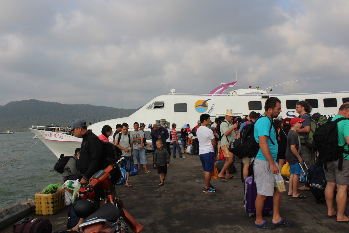 - Самостоятельная поездка от отеля на Фукуоке до отеля (аэропорта) в Хошимине. Маршрут приблизительно такой же как и в предыдущем пункте, но на этот раз никто за ручку вас водить не будет и все билеты придется покупать самостоятельно, а значит взвешивать все риски, что билетов может просто не быть, что, впрочем, маловероятно. Такси в порт обойдется в 120-150 т.д. за машину. Билет на лодку стоит 230 т.д. до Хатьена. Из порта до басстейшена, если не идти пешком около километра, то такси будет стоить еще порядка 50 т.д. Автобус от Хатьена до Хошимина обойдется вам в 170 т.д. И такси по городу, если использовать Uber, будет стоить еще 120 т.д. Итого: 400 т.д. за основной транспорт, а также около 300 т.д. за такси, которое можно разделить с попутчиками.