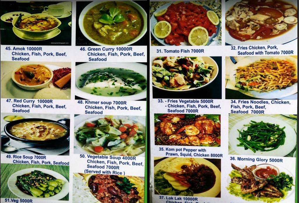 Камбоджа меня вообще привлекает своей кухней — большой выбор разнообразных блюд, включая тайские, которые я очень люблю. В Сиануквиле довольно много кафе, в которых можно отведать практически любой азиатской еды: китайские рестораны, кафе с корейской кухней, местные камбоджийские локалки, тайские и даже вьетнамские блюда, европейская и американская кухня. Уверен, если немного побродить, то можно встретить еду со всех уголков земли, вроде даже мясо кенгуру попадалось, хотя это могло и просто присниться. Однако я все же стараюсь придерживаться правила: в Азии питаться Азиатской едой, а в России русской. Поэтому не смотря на обилие европейских, в том числе русских и украинских блюд, я всё же предпочел поискать чего-то местного. Впрочем, в один день мы с Настей не удержались и съели пиццу — но это уже моя личная слабость.