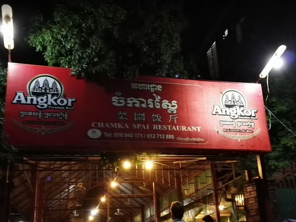 Начну с кафе, расположенного в шаговой доступности от статуи золотых львов, а именно сюда привозят туристов из Вьетнама большинство Фукуокских агентств. Так что, если вы собрались в Камбоджу с острова Фукуок своим ходом (обязательно прочитайте статью), то высадят вас вечером где-то поблизости. В этом случае для скорейшего погружения в кхемерскую культуру, через кхмерскую же кухню ужинать отправляйтесь либо в Титаник (о нём я писал в первой статье, посвященной кафе и ресторанам Сиануквиля), либо в Чамка Спей. Впрочем, можно побродить по округе и выбрать любое другое из заведений, где сидит побольше народа — как я всегда утверждал: наличие большого скопления людей говорит о качестве места. Если люди возвращаются в кафе, значит оно точно достойно внимания.