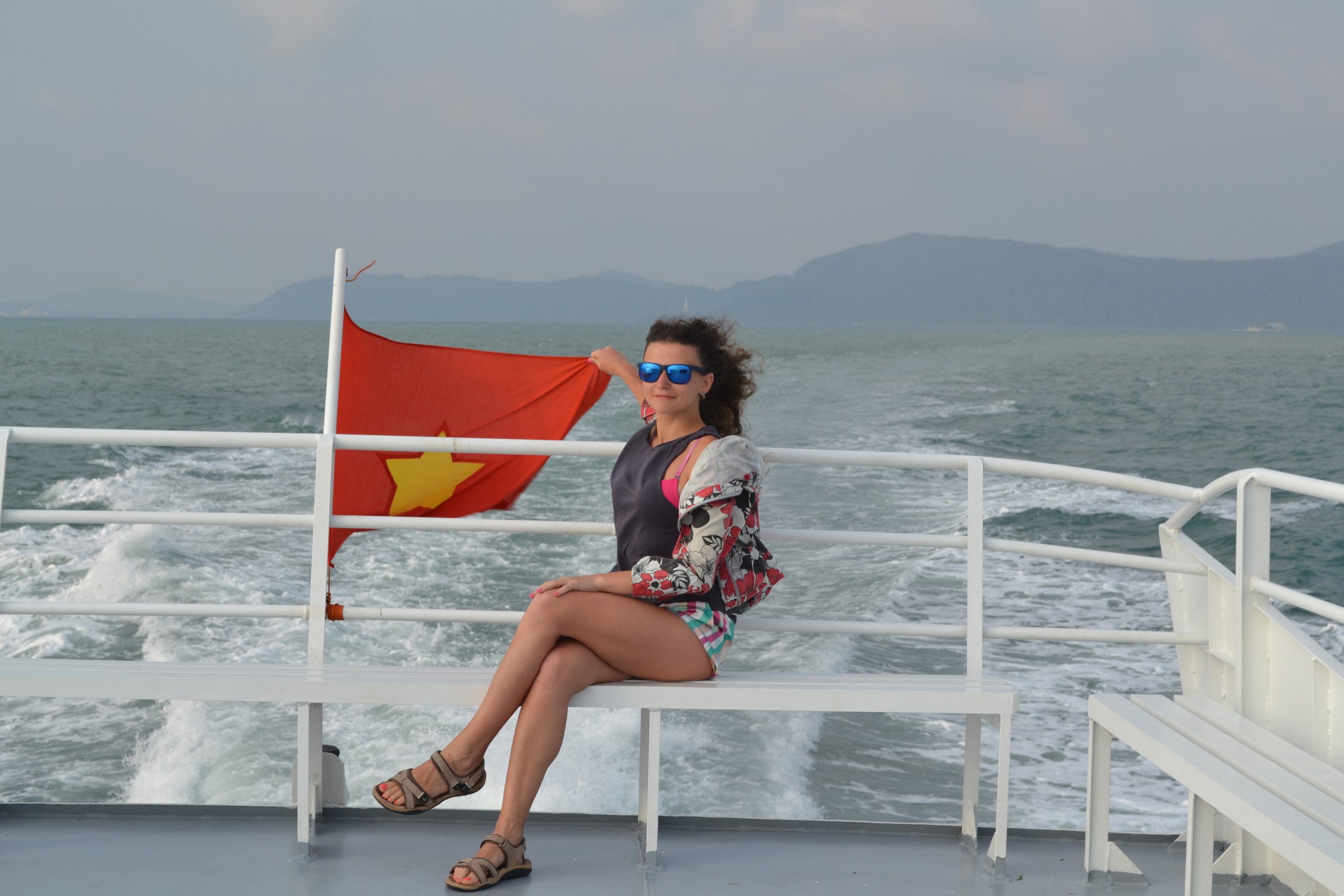 Покружив часа полтора по окрестным отелями и собрав всех желающих отправиться в Камбоджу, мы двинулись к причалу порта острова Фукуок на лодку SuperDong. Суперкатер действительно оказался современным средством передвижения по воде и за час домчал нас до Хатьена, приграничного городка между Вьетнамом и Камбоджей. На причале нам пришлось немного подождать, пока все пассажиры сгруппируются для дальнейшей дороги.