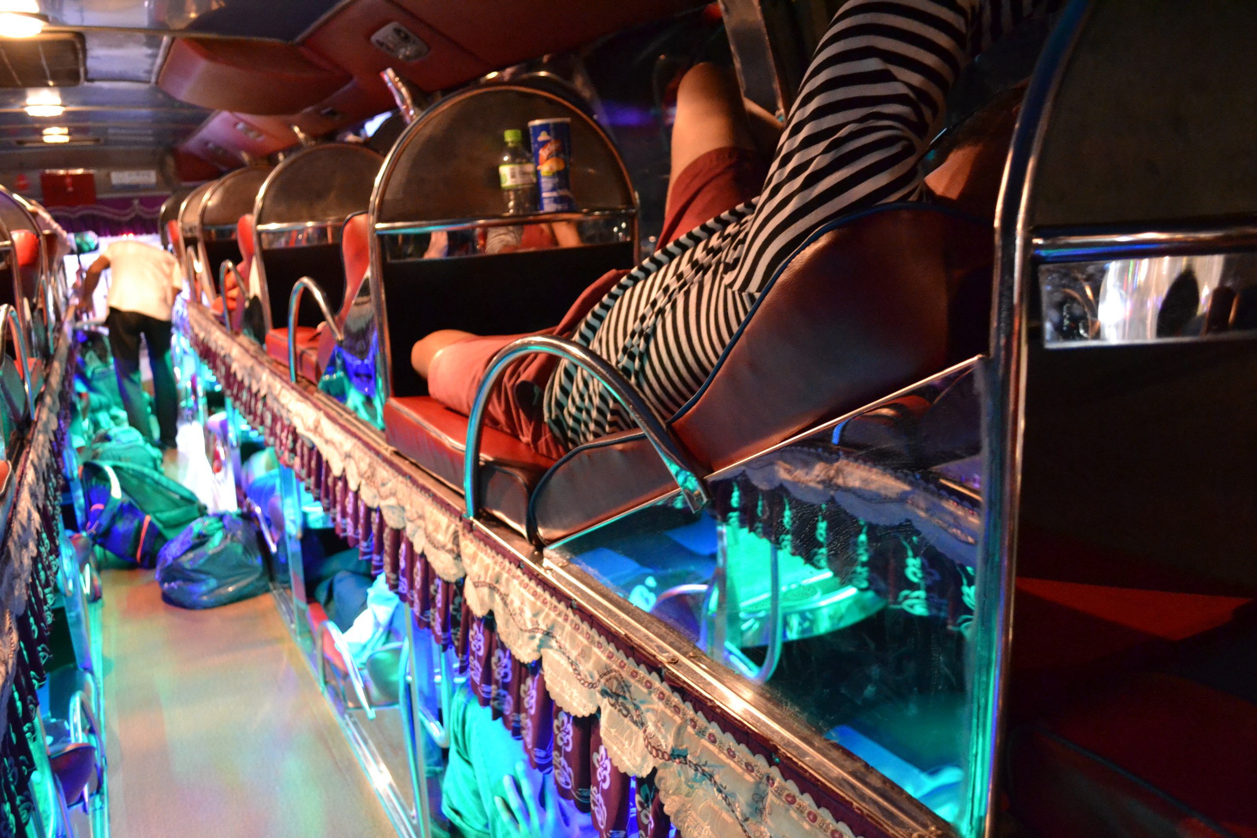 Выезжали мы в ночь, поэтому ожидали слипбас, наши надежды с лихвой оправдались, внутри автобуса каждому месту полагались даже розетки для зарядки гаджетов, не говоря уже о пледиках. Перед тем как зайти в этой райское место комфорта и цивилизации, товарищ водитель проверил билетики и выдал по два пакетика, не долго думая, я одела их на обувь, увидела его недоуменный взгляд, он что-то стал объяснять, я не поняла, да и задерживать поток сзади не хотела. Салон автобуса стал похихикивать надо мной пока я шуршала пакетами на сандалях до своего койко-места, и тут мне все раскрылось, посмотрев на идущих за мной сзади местных путешественников, которые в этих пакетиках благополучно несли свою грязную обувь, а сами шли совсем босиком. Представляете, вот только тут я оценила, насколько там был рай. Измотанные дорогой, уснули почти не думая, уже вовсю доверяя азиатским методам доставки людей из точки А в точку Б.