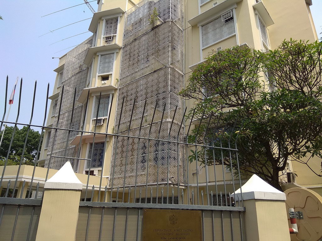 Прилетев на самом раннем рейсе, на котором удалось в 9:30 я вышел из Аэропорта и к 10:20 приехал в консульство. К слову работает оно с 9 утра, когда меня и ждали. Между прочим, если бы не пришлось переносить дату, то я бы прилетел как раз в 8 утра, ну да ладно. Мототакси довезло меня по точно указанному адресу: 40, Ba Huyen Thanh Quan, Ho Chi Minh City — это оказалось небольшим бизнес центром, где я не сразу обнаружил консульство, хотя мог бы догадаться. Большое здание за высоким забором с колючей проволокой и мощными воротами — в лучших традициях России. Все же это русская земля, и на всякий случай надо держать оборону, в последние годы мы не раз были свидетелями, как нападают на консульства — так что мера оправданная.