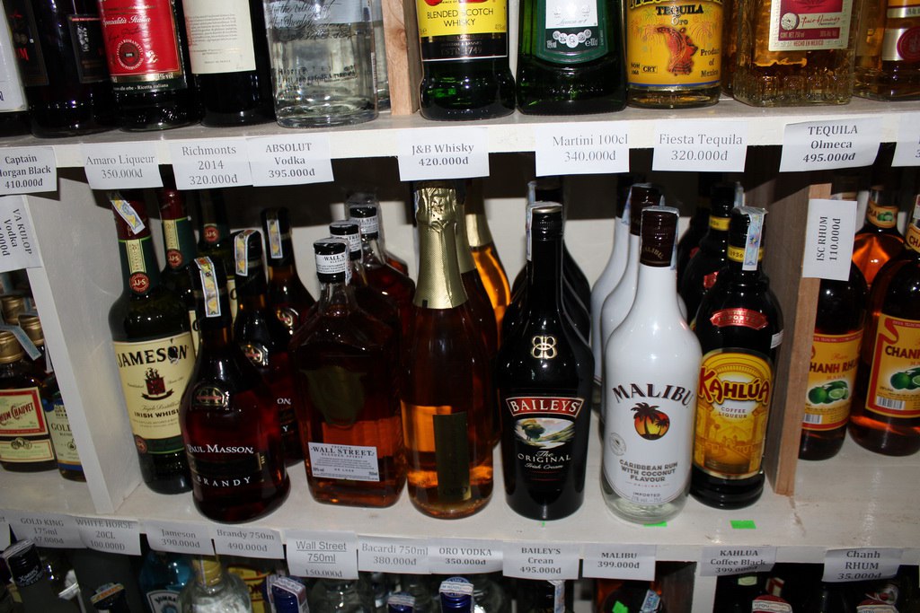 Этот магазин мне нравится довольно неплохим выбором вина и доступными ценами на алкоголь. На Фукуоке несколько винных магазинов, просто этот удобно расположен по пути на рынок. Вино Далат Экспорт 80 000 за бутылку, самый дешевый ром Чювет за 190 000 в округе и, как правило, относительно недорогое молоко, привезенное из Чехии, Франции, Уругвая по цене 33-35 тысяч донгов за литр.